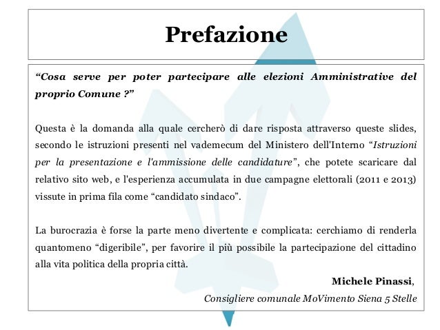 Nelle elezioni amministrative del 1995 ho fatto l esperienza della prima candidatura nella lista dei cristiano sociali di cui ero capolista e portavoce provinciale. Elezioni comunali pubblicazione n 1 elezione diretta del sindaco e del consiglio comunale istruzioni per la presentazione e l ammissione delle candidature 002ni pubbl. Buongiorno a tutti mi presento sono domenico marigliano ho 47 anni ho conseguito la maturità di perito elettronico. Desidero continuare a portare i principi le proposte e le idee del m5s impegnandomi in prima persona.
