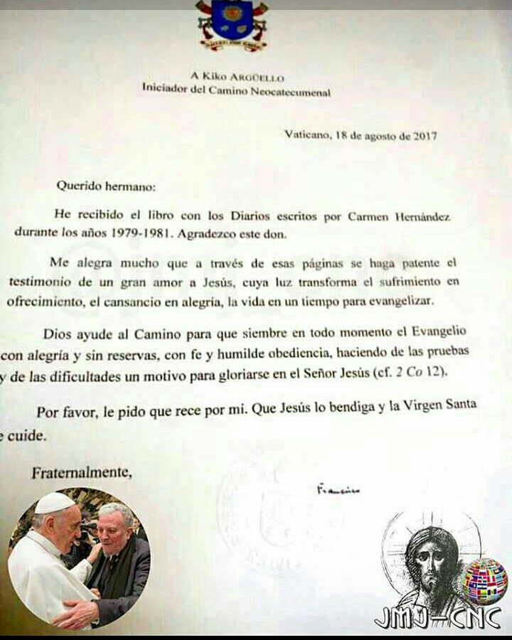 Completare lettera di presentazione kiko osservatorio cammino neocatecumenale secondo verità.